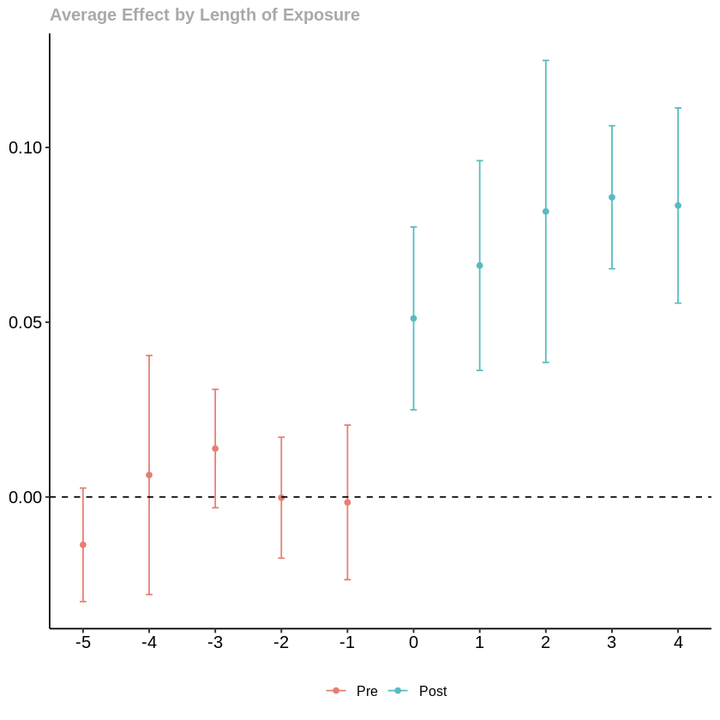 An introduction to difference in differences with multiple time periods and staggered treatment adoption. This tutorial is based on Exercise 1 of the Advanced DiD mixed tape session of Jonathan Roth. You can run and extend the analysis of this case study using Google Colab.