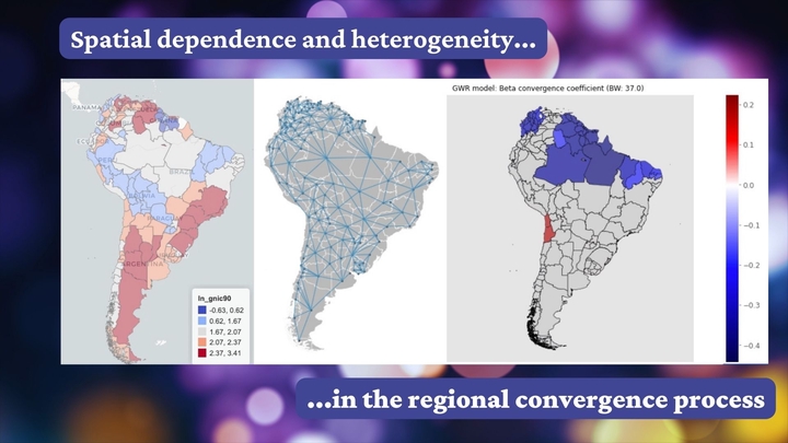 This paper studies the evolution of economic and social disparities across South America. By exploiting a novel multi-country subnational dataset, we evaluate the evolution of gross national income per capita (GNI) and the human development index (HDI) across 151 subnational regions over the 1990-2018 period. In particular , regional dynamics are evaluated through the lens of two spatial convergence models. The first model deals with the role of spatial dependence. Results indicate that for both GNI and HDI, there is an overall process of regional convergence. Furthermore , spatial dependence plays a significant role in this process. A spatial error specification suggests that spatial dependence accelerates the speed of convergence in some decades, but decelerates it in others. The second model deals with the role of spatial heterogeneity. Results indicate that for both GNI and HDI, the speed of convergence is largely heterogeneous across space and time. Moreover, economic and social disparities are characterized by multi-country spatial clusters that show both converging and diverging trends. Taken together, these results emphasize the importance of accounting for spatial dependence and heterogeneity when evaluating the dynamics of economic and social inequality in South America.