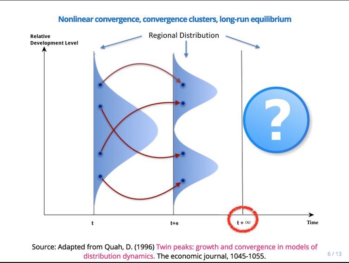 Bolivia has experienced large socioeconomic transformations in the last decades. Among them, almost half of the population currently lives in the main metropolitan regions of the country. Motivated by the potential for growth and development convergence in these regions, this presentations is about the evolution of human development disparities and convergence patterns over the 1992-2013 period. Using a distribution dynamics framework, this article evaluates both the transitional dynamics and the long-run equilibrium of the cross-regional distribution of human development. Results from the transitional dynamics analysis suggest that the formation of multiple clusters of convergence is a salient feature of inequality reduction in human development. On the other hand, results from the long-run equilibrium analysis suggest that the process of regional convergence is characterized by the transformation of a trimodal distribution into a left–skewed unimodal distribution. The article concludes emphasizing that the cross-regional distribution of human development in Bolivia is quite sticky at its left tail, and as a result, the least developed regions are still relatively far from achieving complete convergence in the long run.